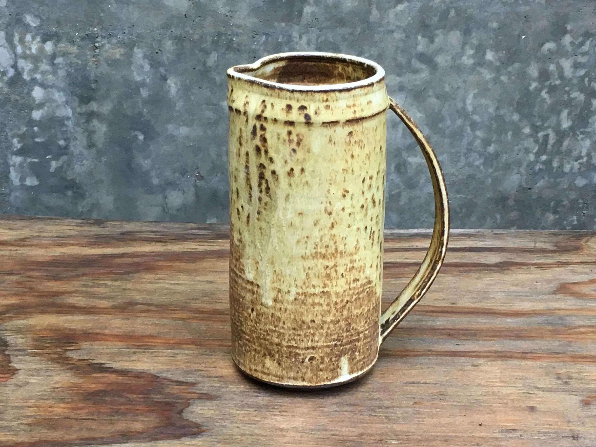 Pitchers, carafes, mugs, cups, tumblers, and tankards can, for the most part, be made within the range of what appears here, not exactly the same, but in the range of. The price range of most drinking vessels are 40.00 to 55.00, large tankards being on the upper end of the price range and simple, non-handled cups on the low end. Pitchers are 90.00 to 125.00, depending on size and glaze treatment. Coffe carafes come with a ceramics filter holder and are 145.00 for the pair.
