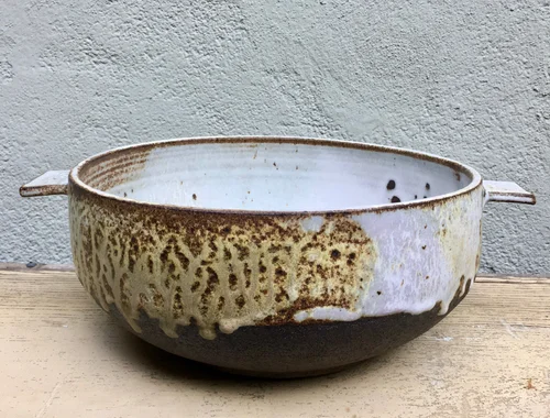 Non-ceremonial bowls are priced, for the most part, according to size: large serving bowls are 175.00 to 225.00, depending on glaze treatment and additions, such as handles; medium bowls without special glaze treatment or faceting range from 85.00 to 150.00; small bowls without special glaze treatment or faceting range from 35.00 to 65.00.